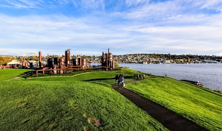 Gas Works Park is a unique and family-friendly destination offering panoramic views of the Seattle skyline and Lake Union. Known for its open green spaces and historic industrial structures, the park blends nature, history, and creativity in one memorable location.